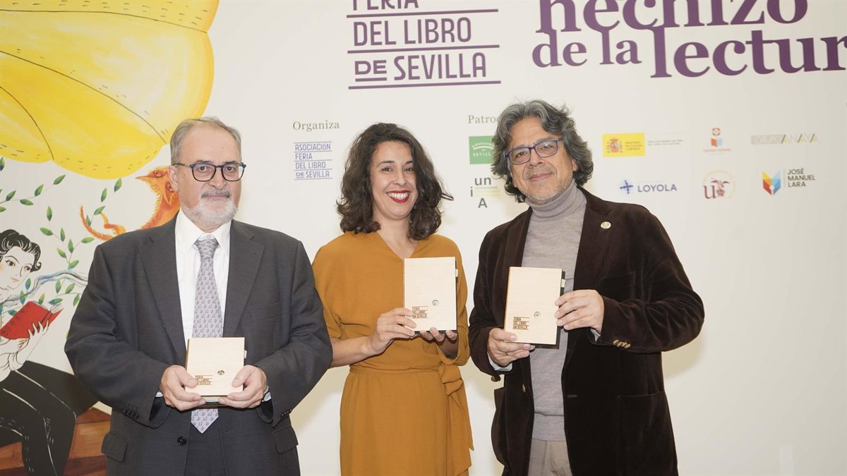 El editor Antonio María Ávila, Fernando Iwasaki y gestora cultural Alicia Bululú, premios Feria del Libro - FERIA DEL LIBRO DE SEVILLA
