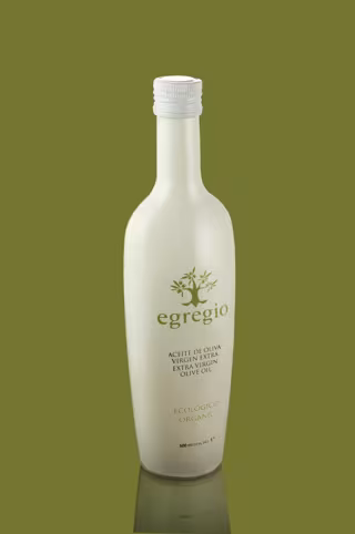 Egregio es un aceite de oliva virgen extra ecológico procedente de aceitunas principalmente de la variedad hojiblanca y picual. Todo el proceso de extracción se realiza en frío, quedando intactas las propiedades organolépticas del virgen extra resultante.