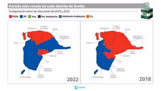 Por detrás se ha situado el PSOE-A, con 7.864 votos y un apoyo del 25,57%, después de ser el partido más votado en los anteriores comicios autonómicos, cuando logró 8.016 sufragios y un respaldo del 26,03% en este distrito sevillano.