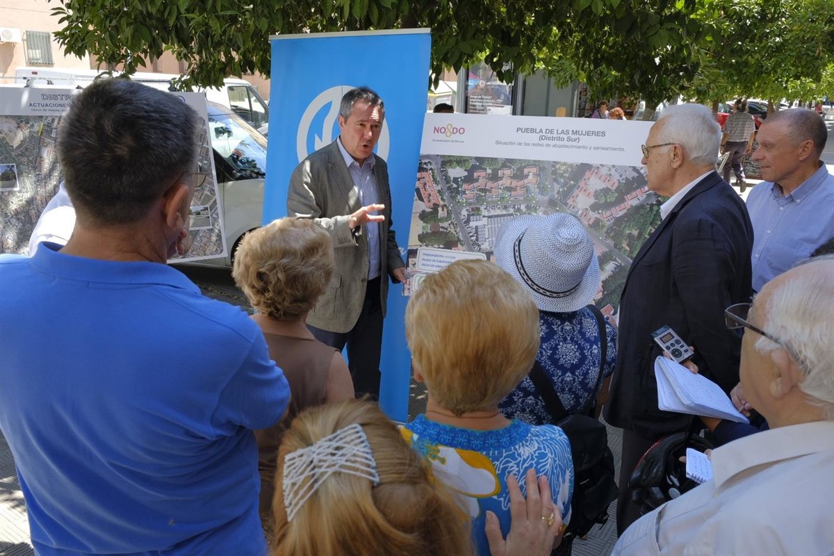 En segundo lugar, el alcalde de Sevilla ha presentado a los vecinos el proyecto de inversión en la calle Puebla de las Mujeres con una duración de cuatro meses y un presupuesto de licitación de 577.710 euros. La sustitución de las redes de abastecimiento en esta calle supondrá la instalación de 300 metros de tubería de fundición dúctil de 80 y 250 milímetros de diámetros, cinco unidades de conexiones a la red en servicio, la dotación de válvulas y de acometidas domiciliarias necesarias para optimizar el servicio.