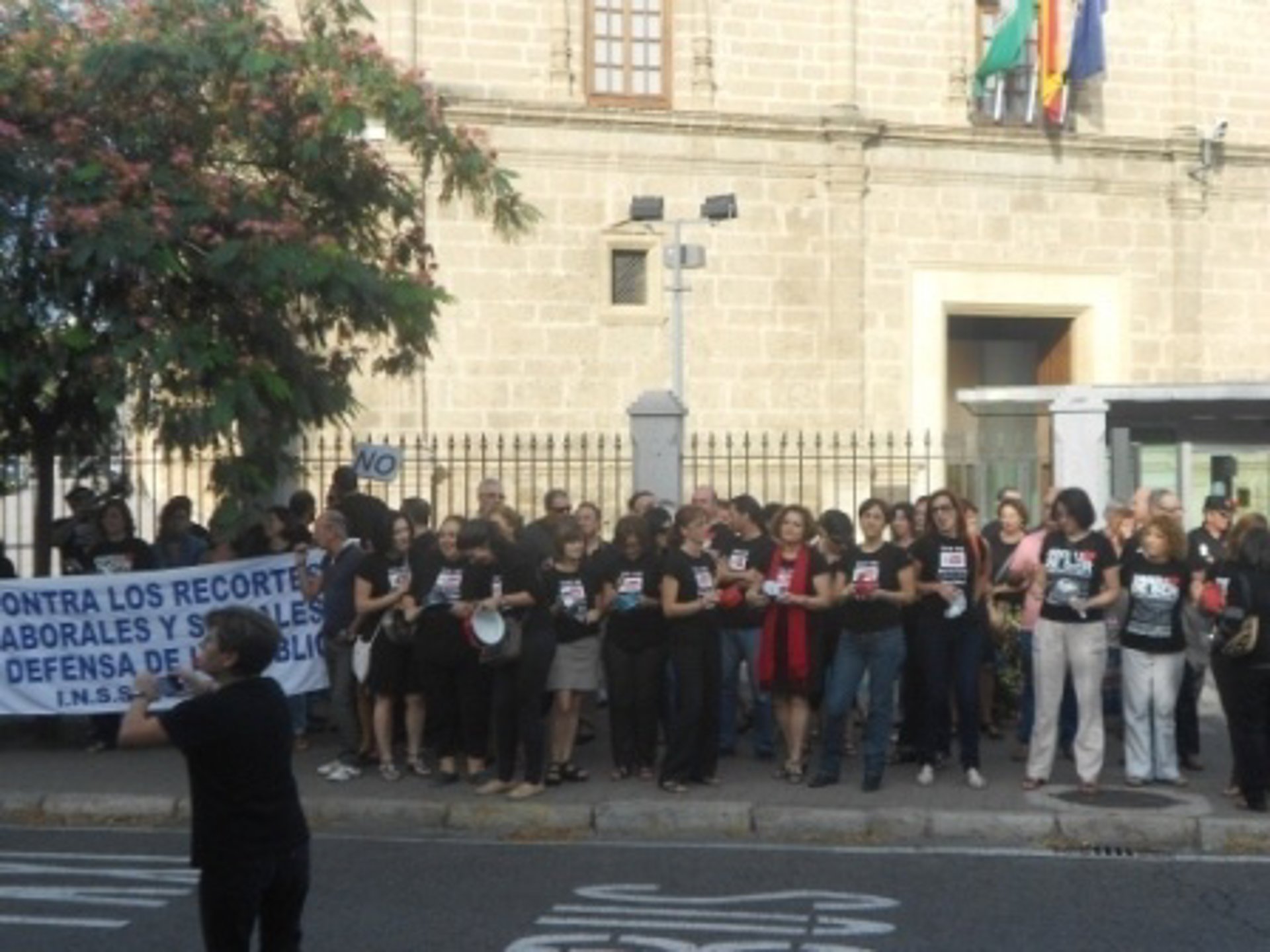 Coincidiendo con la sesión plenaria de la Cámara andaluza, trabajadores públicos de INSS, Parlamento de Andalucía, servicios sociales del Ayuntamiento de Sevilla, Cámara de Cuentas, Hospital Virgen Macarena, Participación Ciudadana del Ayuntamiento de Sevilla e INEM, han expresado "sin incidentes y de forma pacífica, pero si ruidosa", su rechazo más "absoluto" a las decisiones de "los tres gobiernos recortadores", los cuales "sin excepción, siguen a rajatabla una política económica que protege a los bancos y grandes corporaciones e impone sin compensaciones enormes sacrificios a los ciudadanos".