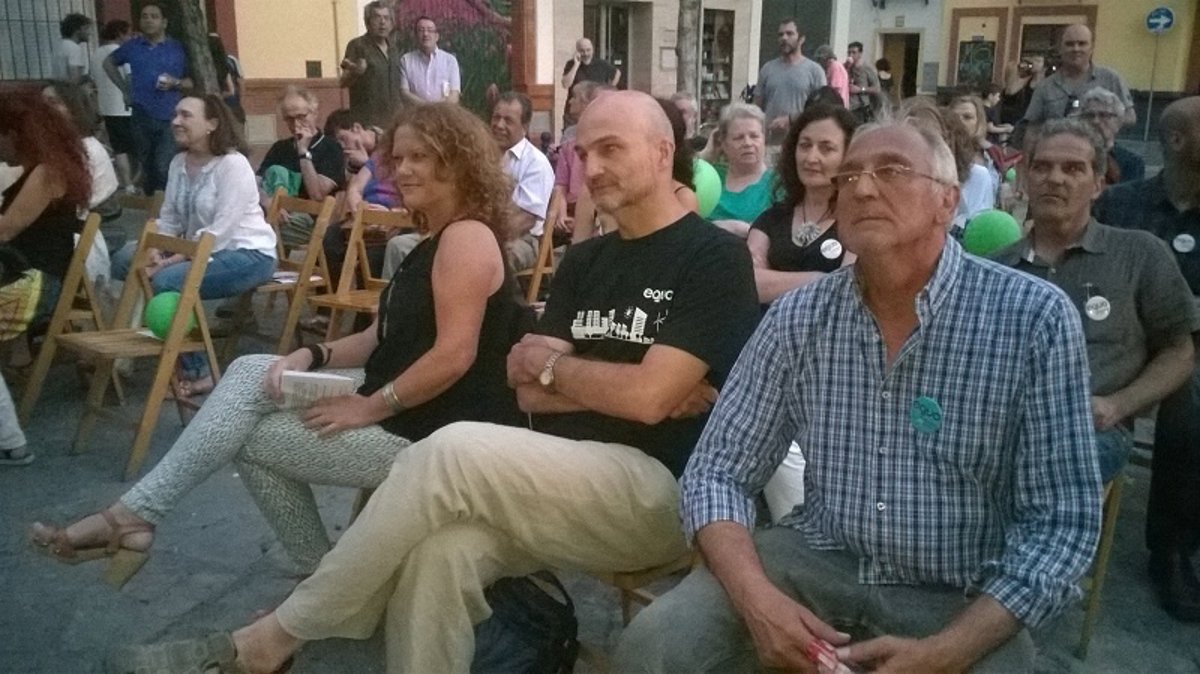 Juan Lopez Uralde, coportavoz federal de Equo, y Esteban de Manuel, candidato a la Alcaldía de Sevilla por este partido, han cerrado por la mañana la campaña en prensa y por la tarde noche han realizado una actividad lúdica y política para todos, con actividades también para los niños en la Plaza San Juan de la Palma.