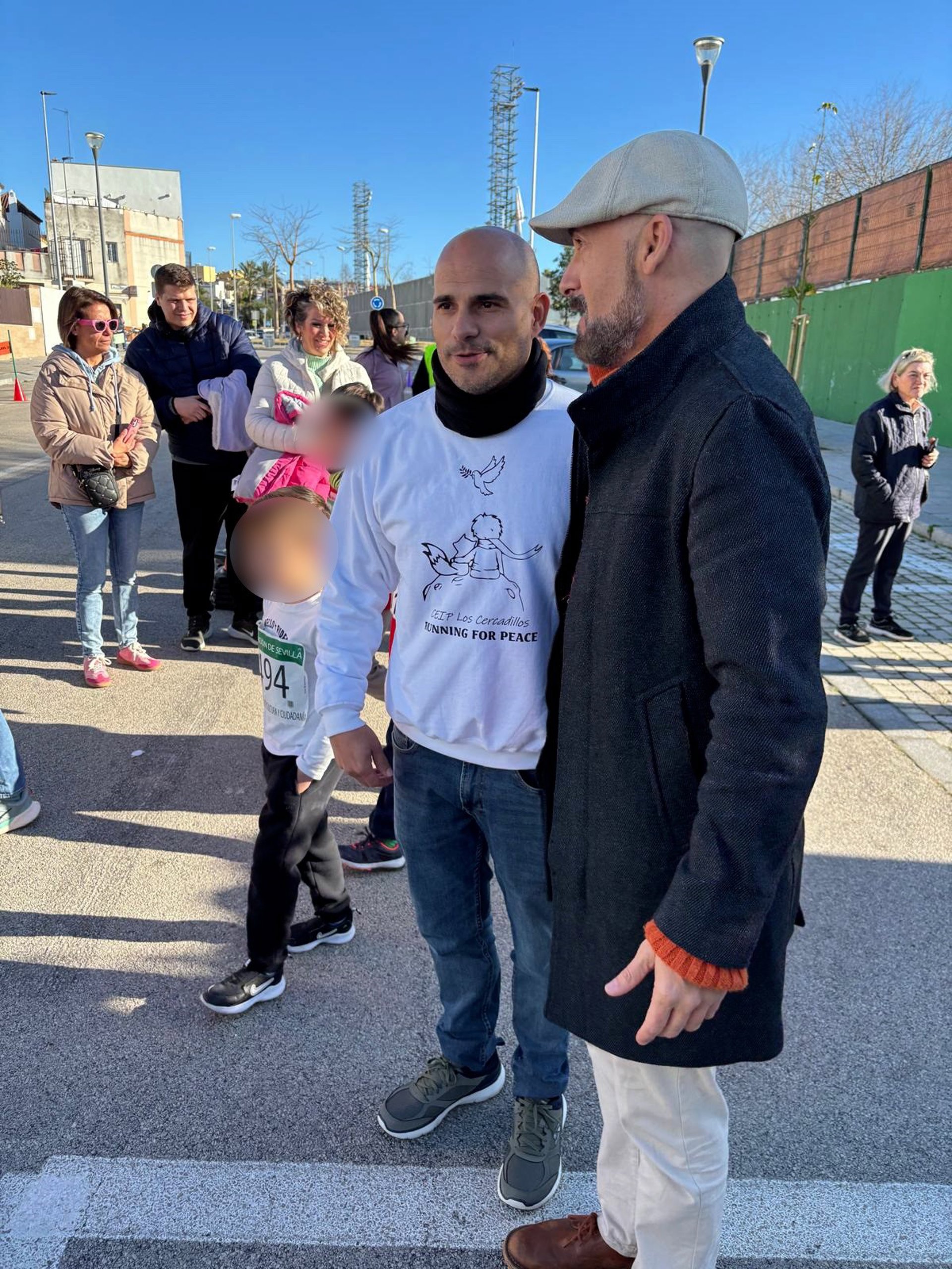 El delegado municipal de Educación del Ayuntamiento, Pablo Chain, junto al director del CEIP Los Cercadillos, Samuel Martín Reina, ha animado a los pequeños corredores y ha resaltado la importancia de inculcar a los niños "los valores de la paz y de la solidaridad y qué mejor que con iniciativas como esta en la que no solo se implican los alumnos sino también el profesorado y el AMPA".