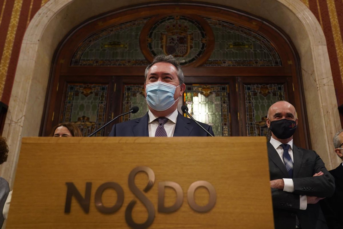 El alcalde de Sevilla, Juan Espadas, durante el anuncio de su renuncia como alcalde de Sevilla tras las fiestas navideñas. - Eduardo Briones - Europa Press