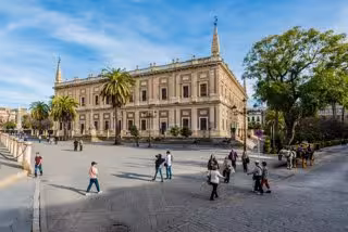 Archivo - Image del Archivo de Indias en la avenida de la Constitución, con coches de caballos - AYUNTAMIENTO DE SEVILLA - Archivo