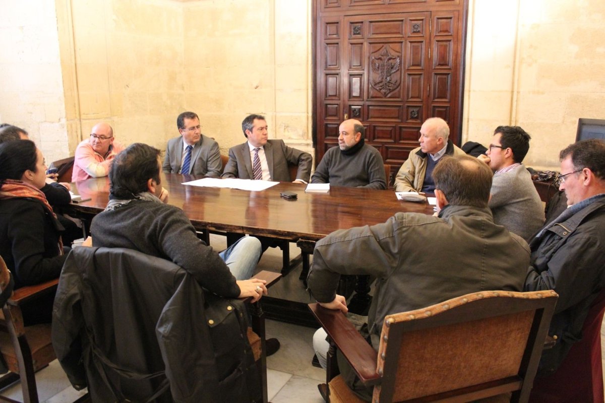 El portavoz socialista del Ayuntamiento de Sevilla, Juan Espadas, y el concejal Juan Carlos Cabrera han mantenido este jueves una reunión con los representantes de las cinco secciones sindicales con representación municipal para pedir la "paralización de la aplicación sin consenso y sin negociación" de la ley de reforma local en el Consistorio, que ha provocado ya la "suspensión" de las escuelas taller, de los programas de refuerzo a la dependencia y de otros planes cofinanciados de áreas como Educación.