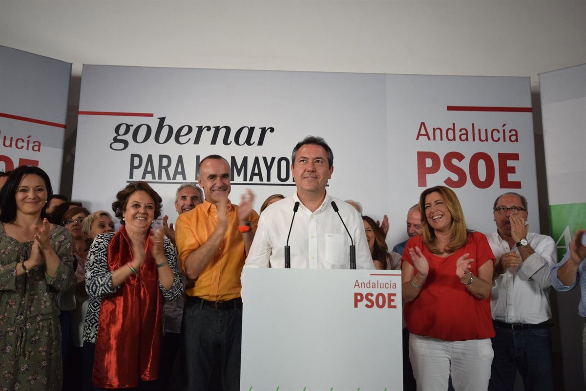 Espadas ha comparecido en la sede regional del PSOE-A, en la calle San Vicente de Sevilla, junto a la secretaria general de los socialistas andaluces y presidenta de la Junta en funciones, Susana Díaz, y los miembros de la Comisión Ejecutiva Regional, entre otros.