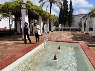 La alcaldesa, Cristina Los Arcos, y la concejala de Cultura, Reyes Corteguera, visitan la puesta a punto de una de las fuentes situada en el Centro Cultural Casa de las Monjas. - AYUNTAMIENTO DE ESPARTINAS