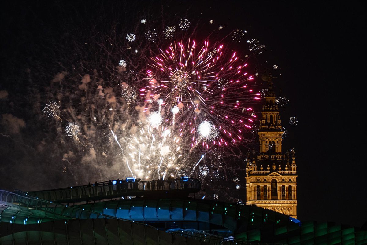 Archivo - Espectáculo de fuegos artificiales sobre Las Setas, con la Giralda de fondo, con el se clausuraba la Feria de Abril del pasado año. - María José López - Europa Press - Archivo