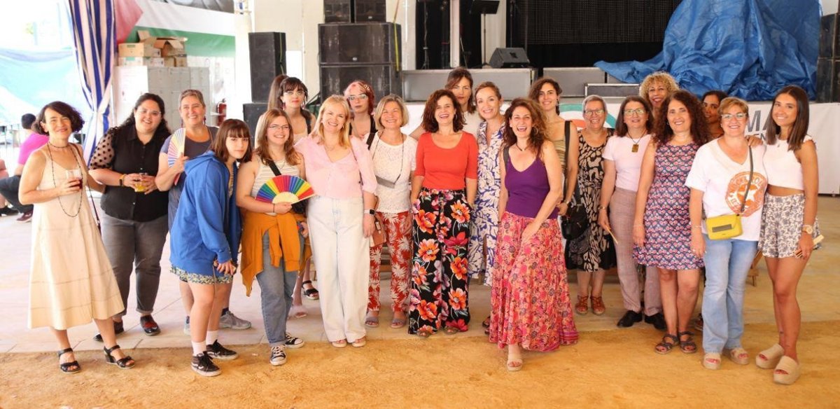 Esperanza Gómez ha visitado este viernes, primer día de la campaña electoral de las elecciones autonómicas del 19 de junio, la caseta de IU en la Feria de La Rinconada, donde ha participado en un encuentro de mujeres titulado "Feminismo y diversidad".