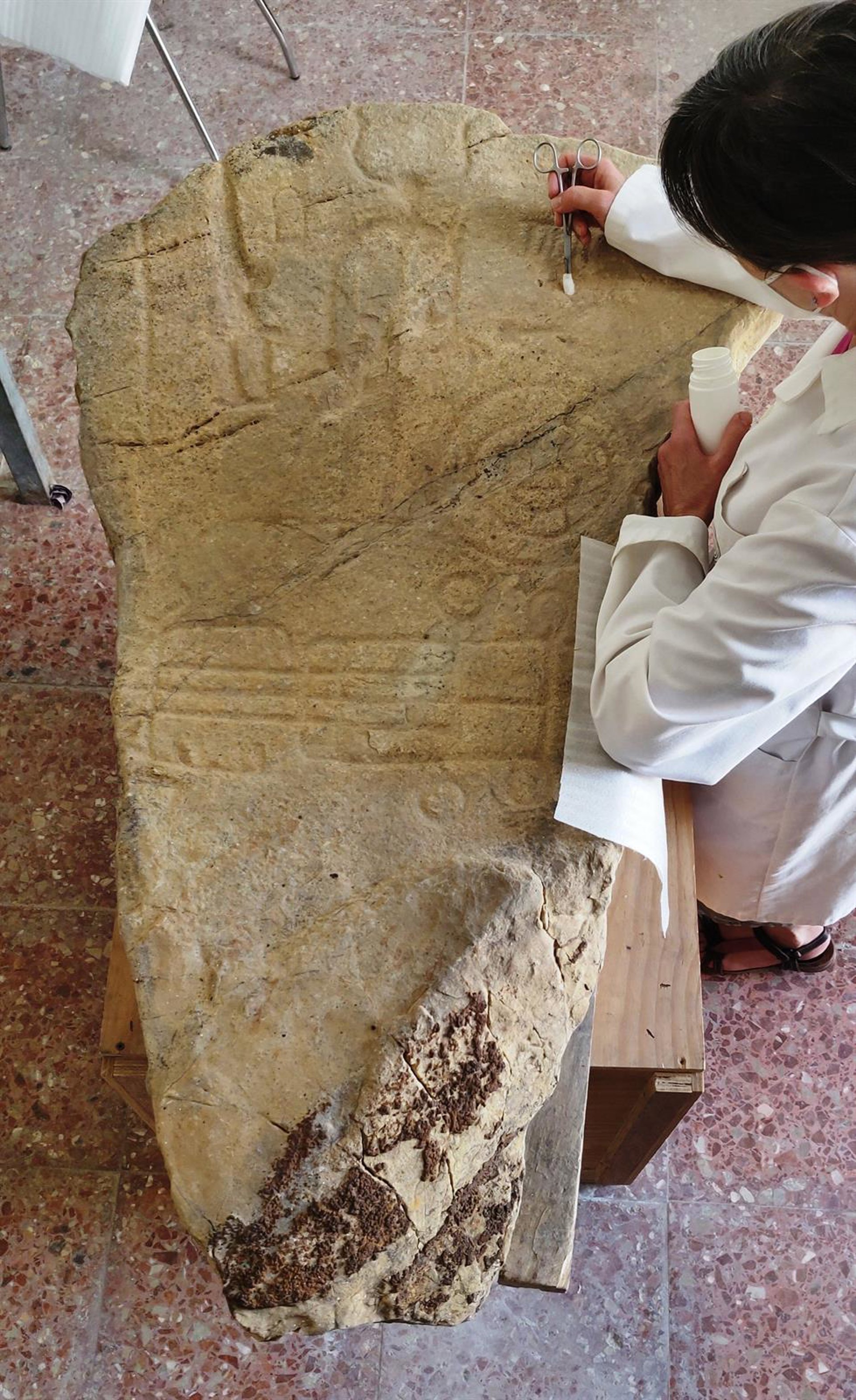 Labores de limpieza en la estela V de Écija - MUSEO HISTÓRICO MUNICIPAL DE ÉCIJA