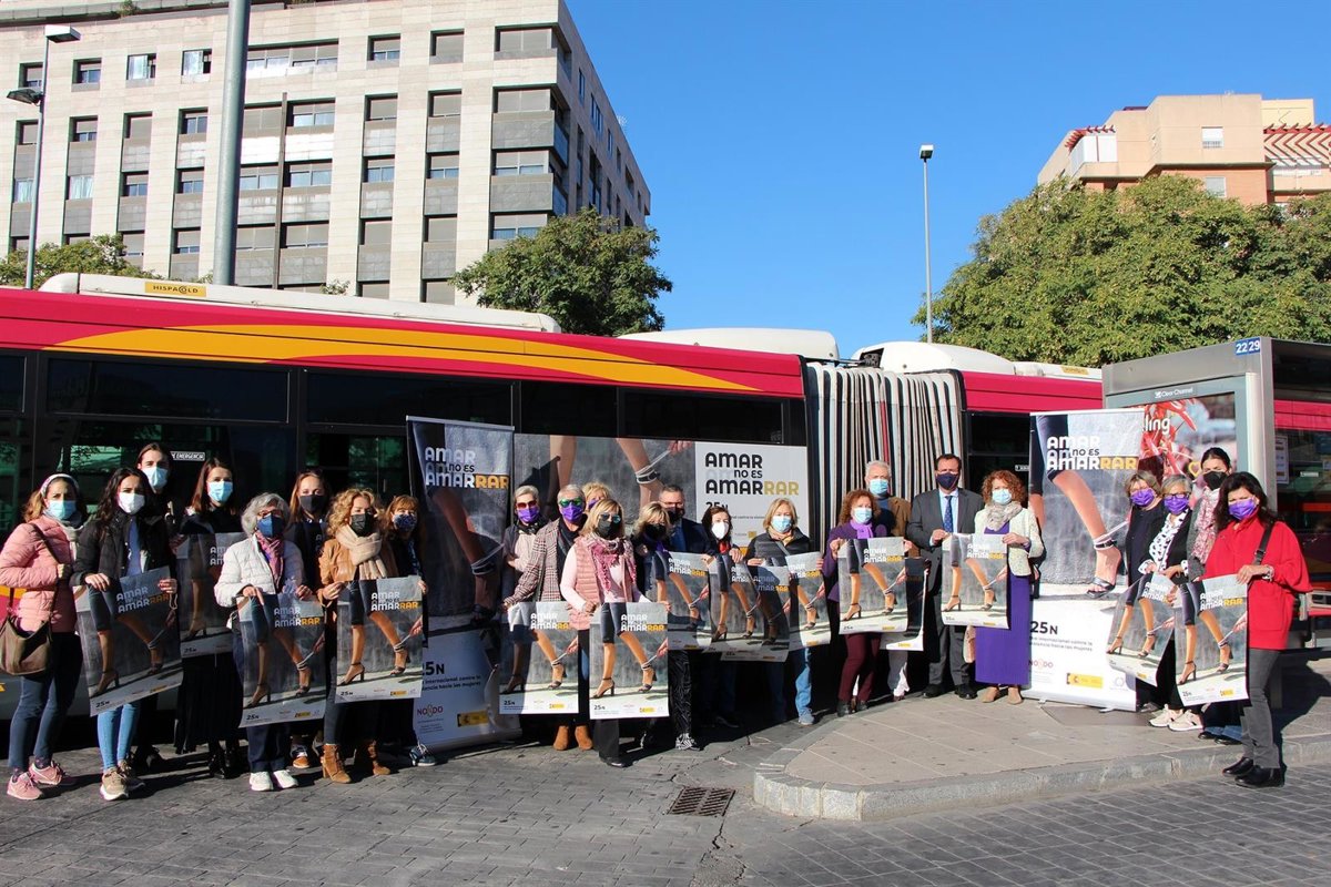 La delegada de Igualdad, Educación, Participación Ciudadana y Coordinación de Distritos, la socialista Adela Castaño, junto al delegado de Gobernación y Fiestas Mayores, Juan Carlos Cabrera, han sido los encargados de dar a conocer la nueva campaña para el 25N, que podrá verse en quince autobuses y en 25 marquesinas de Tussam, así como en las redes sociales.