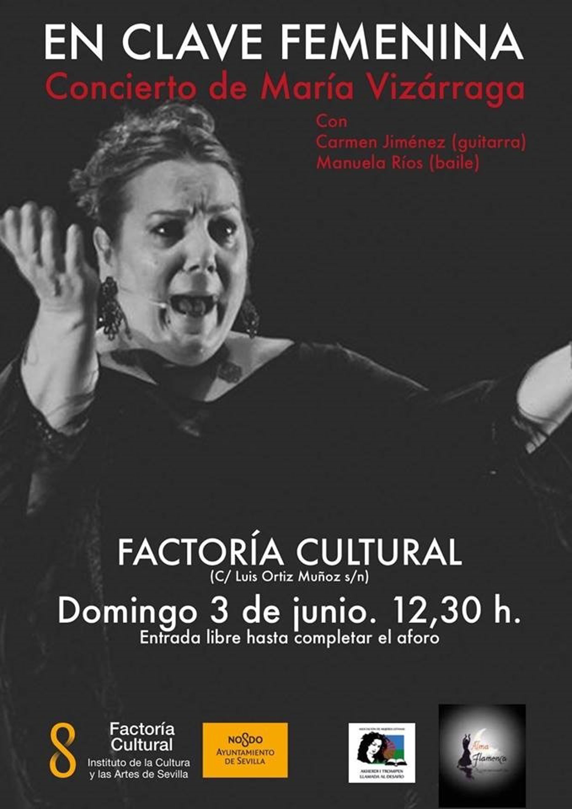 La Factoría Cultural del Polígono Sur de Sevilla acoge este domingo 'En Clave Femenina', un concierto de María Vizárraga, con Carmen Jiménez (guitarra) y Manuela Ríos (baile).