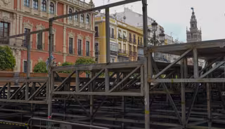 Imagen de la Plaza de San Francisco de Sevilla, donde se estaba montando los palcos para la Semana Santa - Eduardo Briones - Europa Press