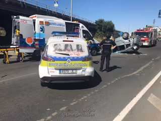 Ha sido a las 16,40 horas de este viernes cuando un turismo que circulaba por la A-4 en dirección al aeropuerto, por razones que se desconocen en este momento, se ha salido de la vía y, tras romper las barreras de protección, ha caído sobre la rotonda del Parque Alcosa.
