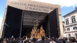 Imagen del Cristo de la Expiración de la Hermandad de El Cachorro en la Gran Procesión del Jubileo en Roma (Italia). - EUROPA PRESS