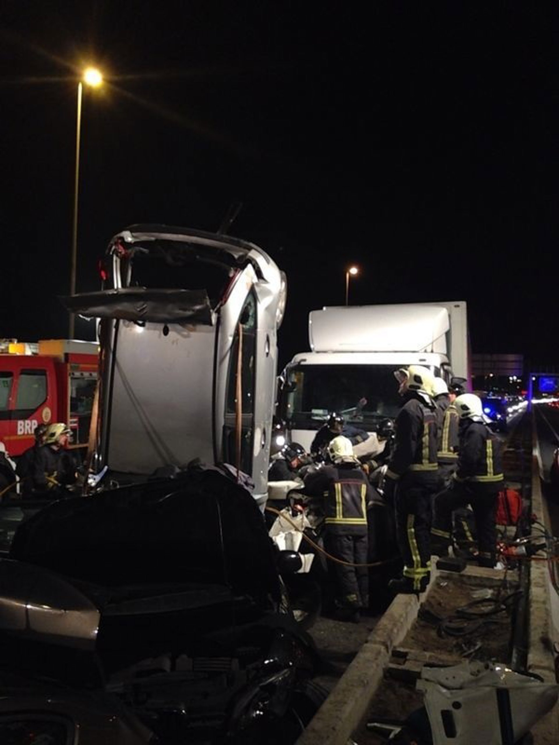 En el mismo se han visto implicados un camión frigorífico y seis turismos. Además del fallecido, el herido grave y el ileso, fuentes de la Guardia Civil han explicado a Europa Press que se han registrado ocho heridos leves: para tratar de agilizar el tráfico, la Benemérita ha dado paso alternativo por un carril.