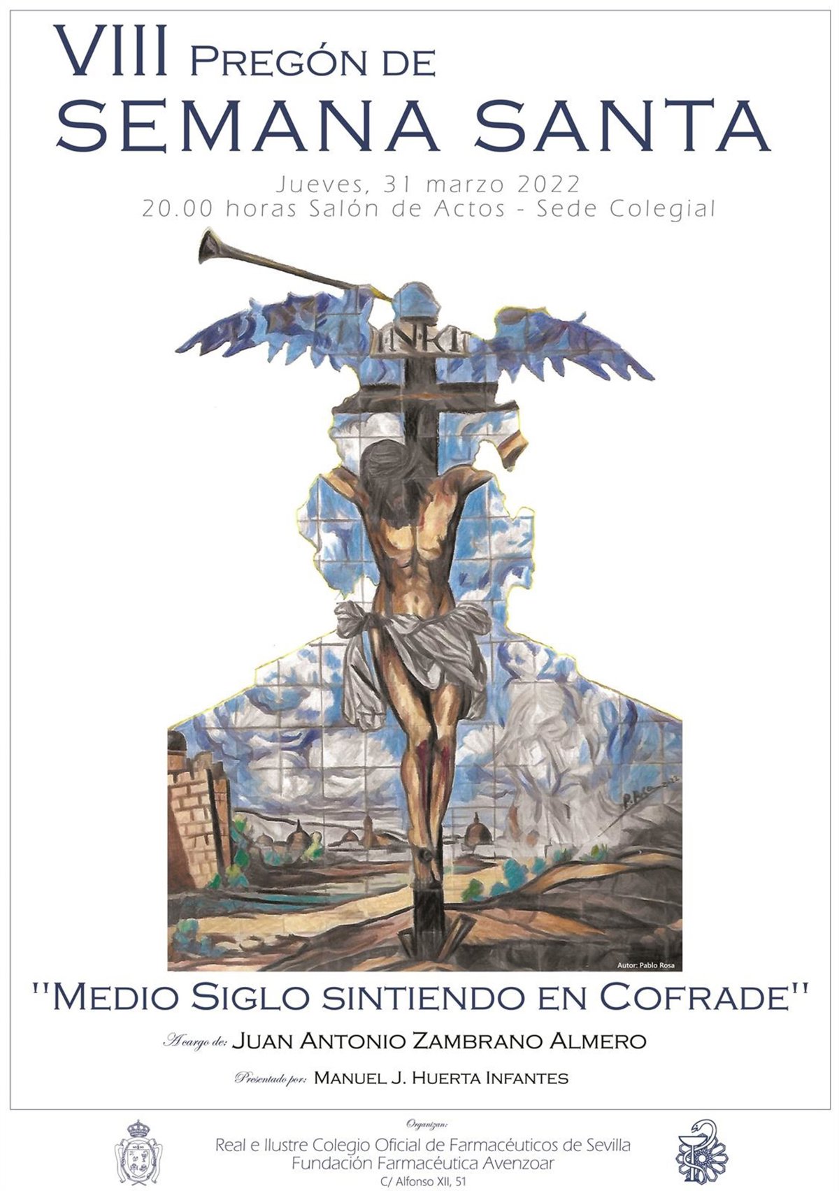 Cartel del VIII Pregón de la Semana Santa organizado por el Colegio de Farmacéuticos de Sevilla. - COLEGIO DE FARMACEUTICOS DE SEVILLA