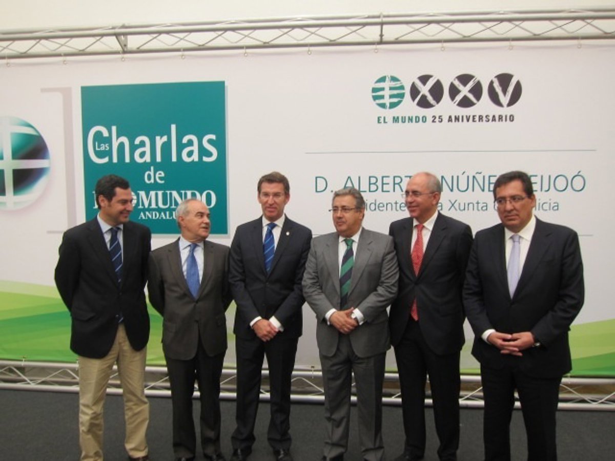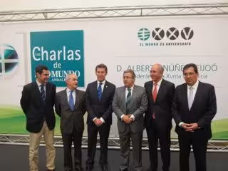 A este acto acudieron numerosas personalidades del PP andaluz y dirigentes empresariales, y también intervinieron el presidente de la Fundación Cajasol, Antonio Pulido, y el director de El Mundo Andalucía, Francisco Rosell, quien destaca la importancia de las elecciones europeas, así como la cercanía a la gente de Núñez Feijóo, con el que comparte orígenes gallegos.
