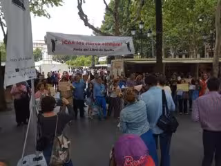 La Feria del Libro de Sevilla se ha clausurado este domingo con una manifestación lectora, en la que han participado centenares de personas, que se han puesto en pie con los libros en alto para reivindicar el poder de transformación social de la lectura. Libreros, editoriales, escritores, administraciones públicas, medios de comunicación y lectores en general se han unido en este acto para reclamar juntos la importancia de las letras.
