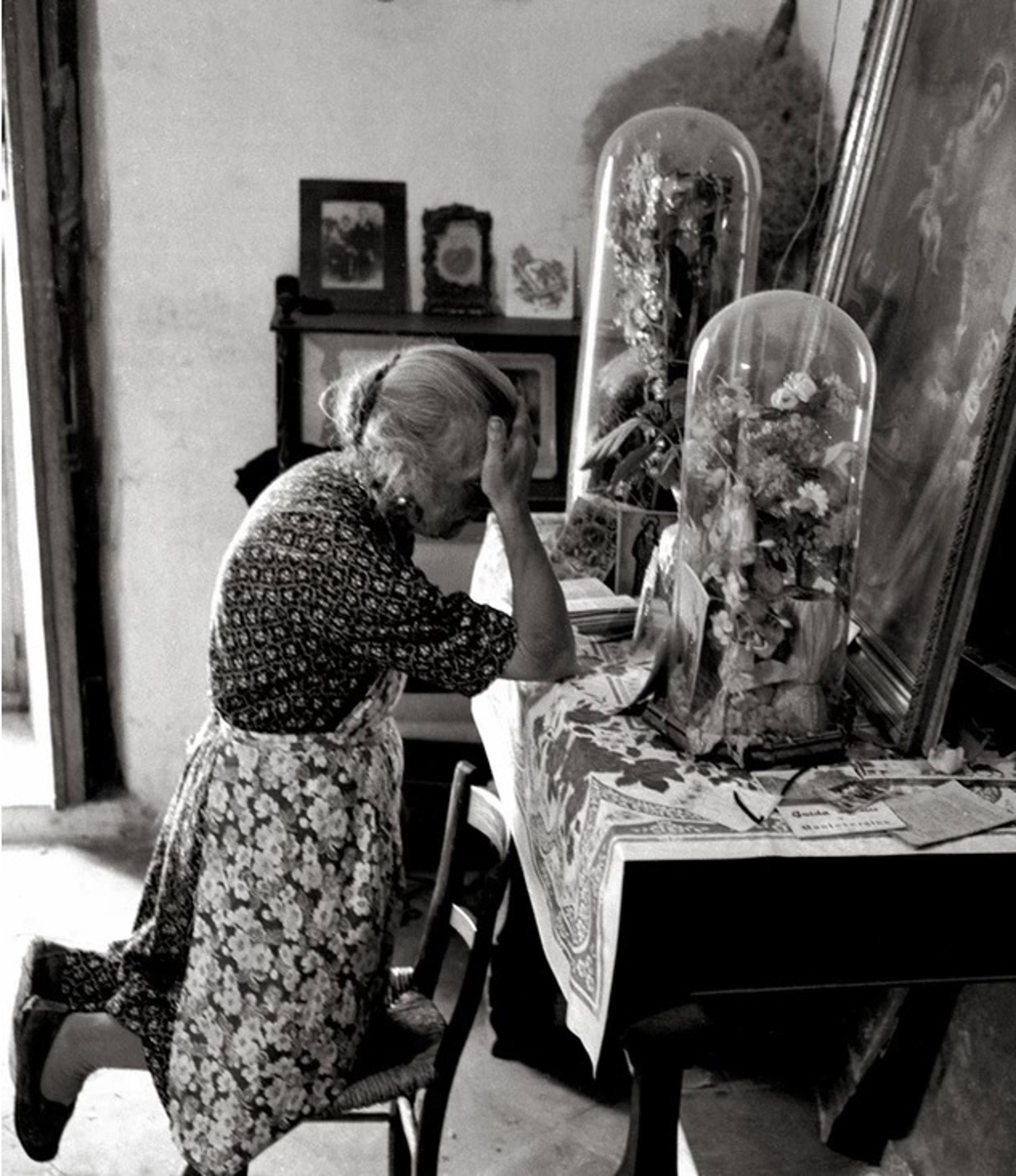 Un primer bloque se dedica al sur de Italia, una región donde a mediados del pasado siglo Mangini recogió con su cámara el espíritu de aquel paisaje natural y humano, en el que se fundían la belleza y la pobreza más puras. También viajó por aquellos años de posguerra al norte del país para mostrar los latentes abismos de clase en ciudades económicamente pujantes como la industrial Milán, testigo de la desolación y la ignorancia en sus calles durante el periodo posterior a la dictadura de Benito Mussolini.