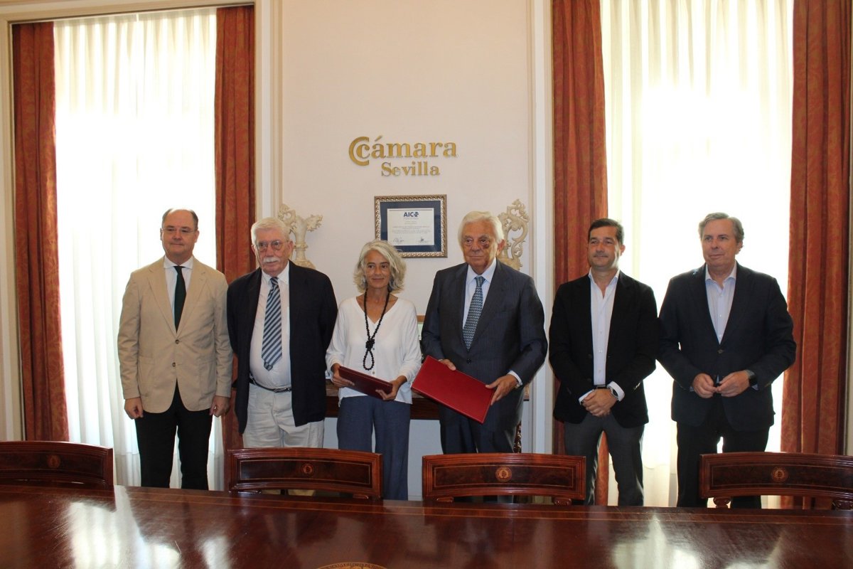 El presidente de la Fundación Cámara de Comercio de Sevilla, Francisco Herrero, y la presidenta de la Fundación para la investigación y Difusión de la Arquitectura del Sur (Fidas), Nuria Canivell, han firmado un acuerdo de colaboración en el que ambas entidades trabajar conjuntamente en el desarrollo de 'Sevilla Oculta'.