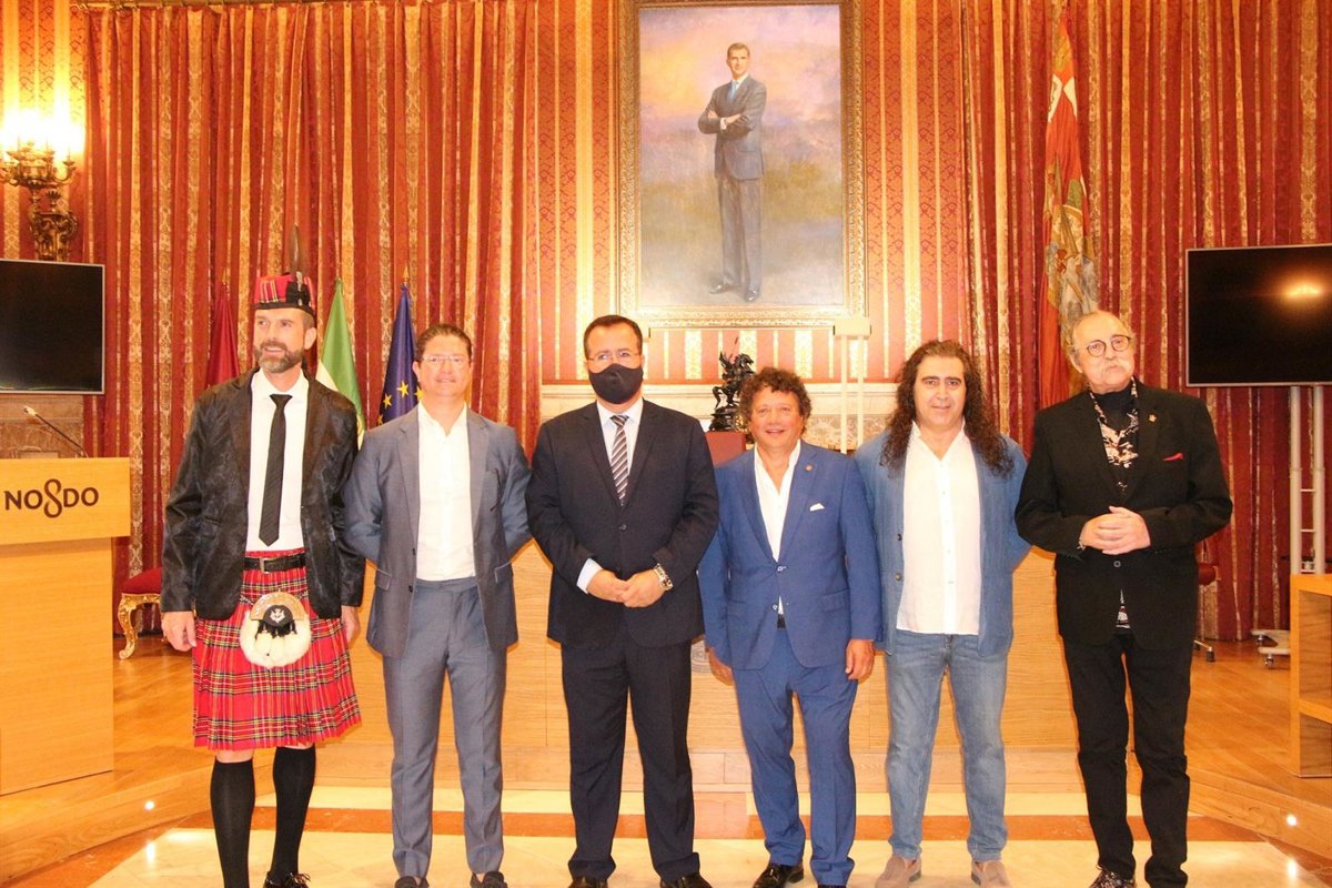El edil de Gobernación y Fiestas Mayores, Juan Carlos Cabrera, ha presentado este lunes junto a Pascual González y los integrantes de Cantores de Híspalis este nuevo espectáculo, que se estrenará en primicia en la Plaza de España.