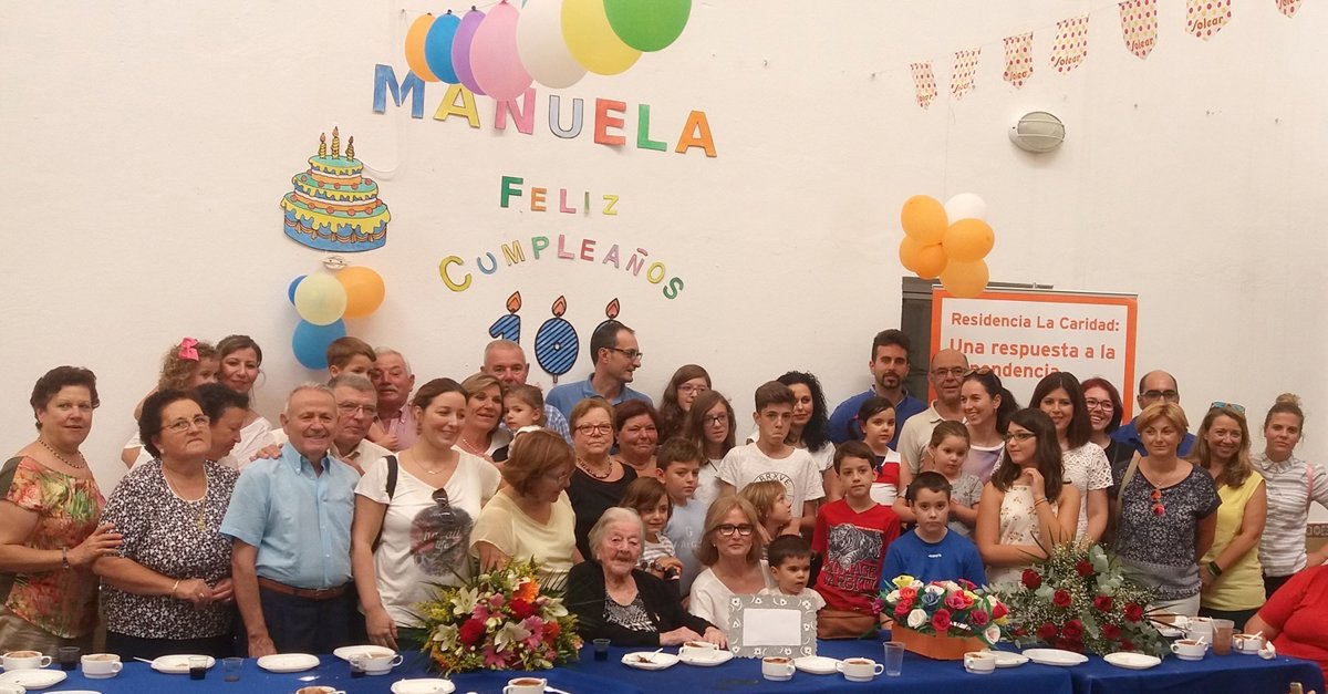 La residencia de mayores La Caridad de Lebrija (Sevilla) ha acogido una fiesta de cumpleaños, en la que la lebrijana Manuela Cárdenas ha celebrado sus cien años de vida junto a su familia y los trabajadores y usuarios de este centro gestionado por la Fundación Gerón.