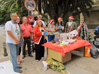 Desde la Audiencia Provincial, se han desplazado hasta la sede del PP-A para hacer entregar de una cesta de Navidad, en la que se incluían frases alusivas a la situación de los funcionarios, así como unas bolsas repletas en las que se podía leer "cargaditos de recortes".