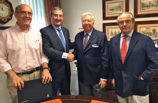 En el acto de la firma del convenio los dos presidentes estuvieron acompañados por los miembros del patronato de Proyecto Hombre, Enrique Osborne y Francisco Herrera.