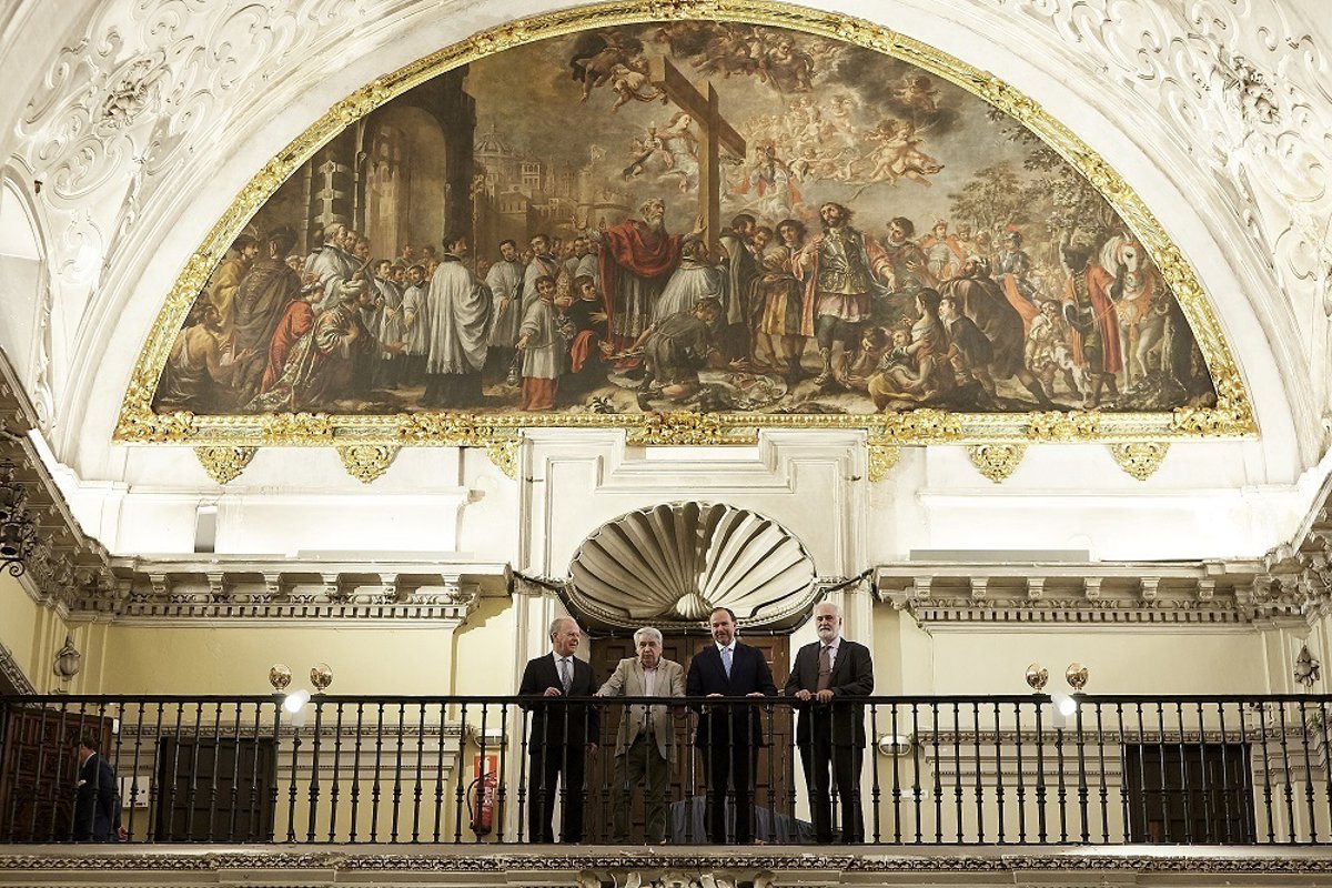 En la presentación del resultado final de este proceso, junto al equipo restaurador, ha intervenido Enrique Valdivieso, catedrático de Arte y hermano de la Santa Caridad responsable del área artística, quien han aportado información sobre la historia de la obra restaurada, "Exaltación de la Santa Cruz".