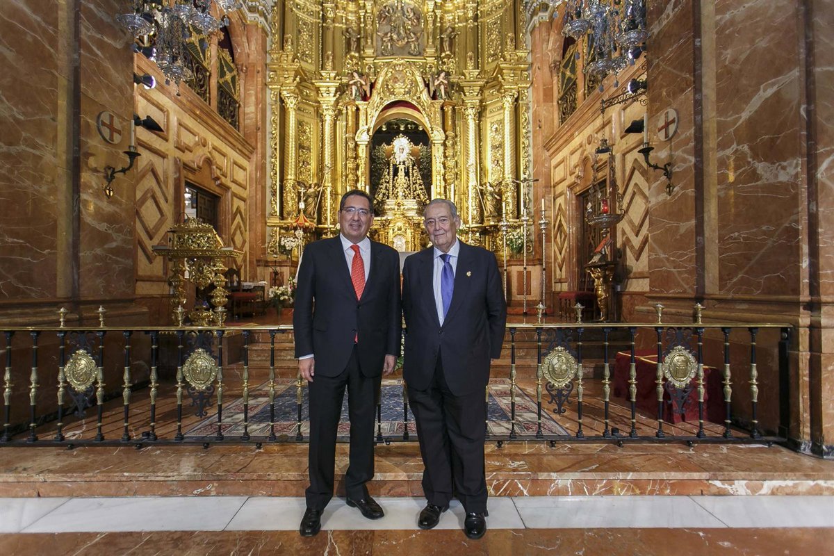 El presidente de la Fundación Cajasol, Antonio Pulido, y el Hermano Mayor de la Macarena, Manuel García, han firmado un convenio de colaboración para la eliminación de barreras arquitectónicas en la Basílica.