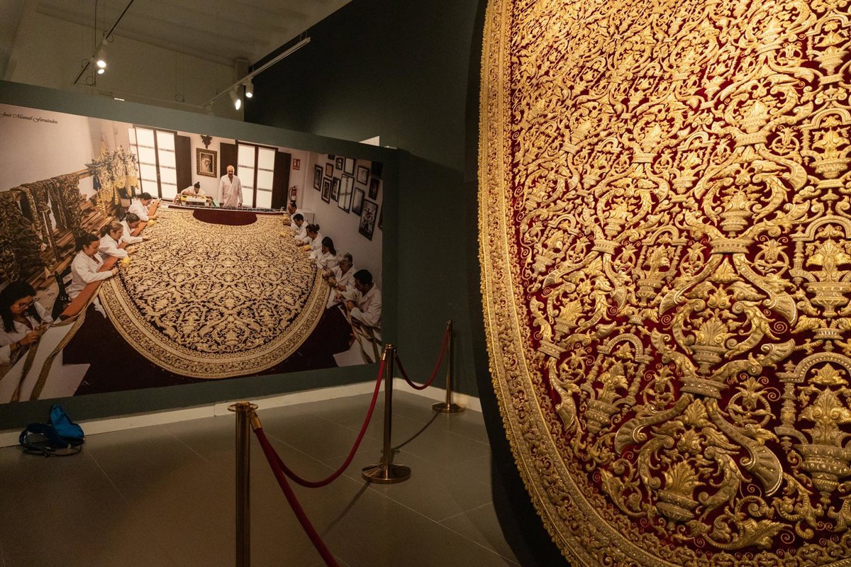 Bordado exclusivamente en hilo de oro, el manto destaca por el complicadísimo diseño de los módulos ornamentales y por la gran interpretación técnica de las artesanas bordadoras.