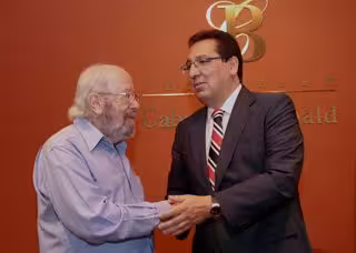 El presidente de la Fundación Cajasol, Antonio Pulido, y el presidente de la Fundación Caballero Bonald, José Manuel Caballero Bonald, han reforzado las líneas de actuación entre ambas entidades tras renovar el convenio colaboración por el que se comprometen, un año más, a seguir promoviendo, conservando y divulgando la cultura en el ámbito de las letras.