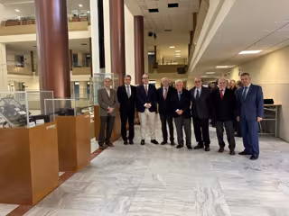 Foto de familia tras la inauguración de la muestra de Fundación Endesa en la ETSI sobre la evolución tecnológica en el sector en los últimos 100 años. - FUNDACIÓN ENDESA