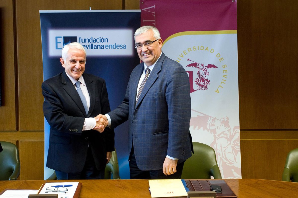 El rector de la Universidad de Sevilla (US), Antonio Ramírez de Arellano, y el presidente de la Fundación Sevillana Endesa, Antonio Pascual, han suscrito este martes un acuerdo de colaboración para iluminar el interior de la Iglesia de la Anunciación, de la que la Hispalense es titular.
