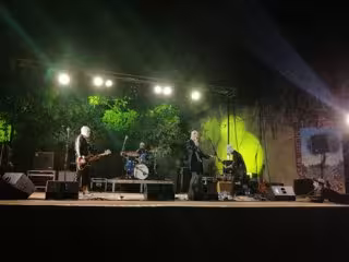 La banda granadina "Santo Drama" abrió el telón del Gonzalo Rock 2022 ataviados con máscaras, que no se quitan nunca ni en sus actuaciones en directo ni en los videoclips. Hasta la fecha han grabado seis sencillos y han realizado numerosos conciertos por toda la geografía andaluza.
