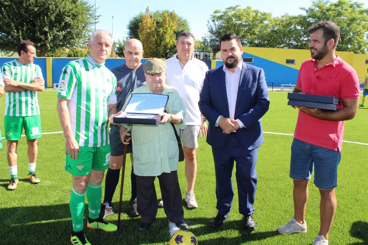 El propio 'Roque', en compañía del Alcalde, Romualdo Garrido, y el delegado de Deportes, Manuel Camino, fue el encargado de hacer el saque de honor y entregar un obsequio de recuerdo a cada conjunto así como al árbitro, dando el pistoletazo de salida a una jornada que se caracterizó por el buen ambiente tanto en el terreno de juego como en grada.