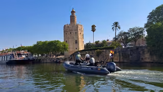 Completan el despliegue personal de las Fuerzas Armadas, Policía Local de Sevilla y personal de protección civil y auxiliar que han participado en las labores de protección del evento.