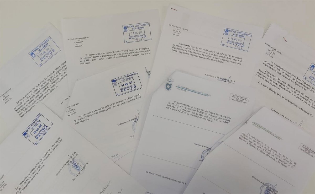 Ante el litigio contencioso administrativo del Grupo socialista del Ayuntamiento de Carmona (Sevilla), que acusa al alcalde, el popular Juan Ávila, de demorar "de forma intencionada los plazos de entrega y acceso a documentos", el Gobierno local ha negado tal extremo y ha defendido que "la Alcaldía siempre ha contestado afirmativamente a sus peticiones de información y los grupos de oposición siempre han tenido acceso a los expedientes solicitados, como pueden demostrarse documentalmente y como constatan los distintos servicios técnicos municipales a los que se le requiere la consulta de dichos documentos".