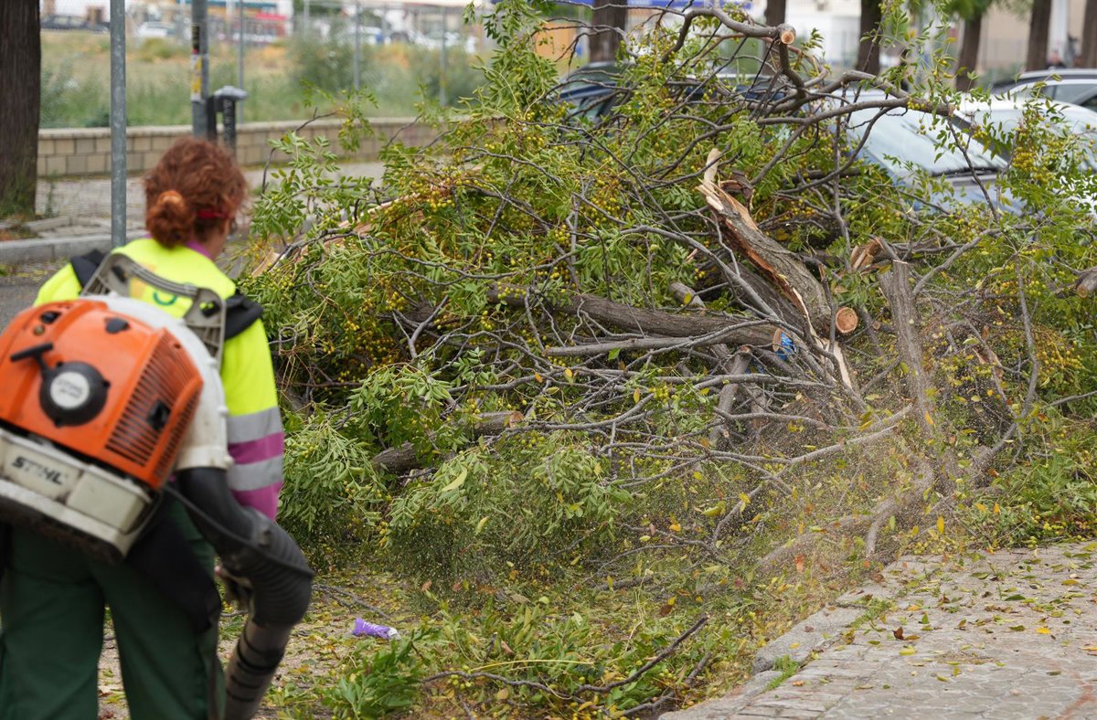 Operarios de parques y jardines despejando las zonas de ramas de árboles. A 23 de octubre de 2023, en Sevilla (Andalucía, España). - María José López - Europa Press