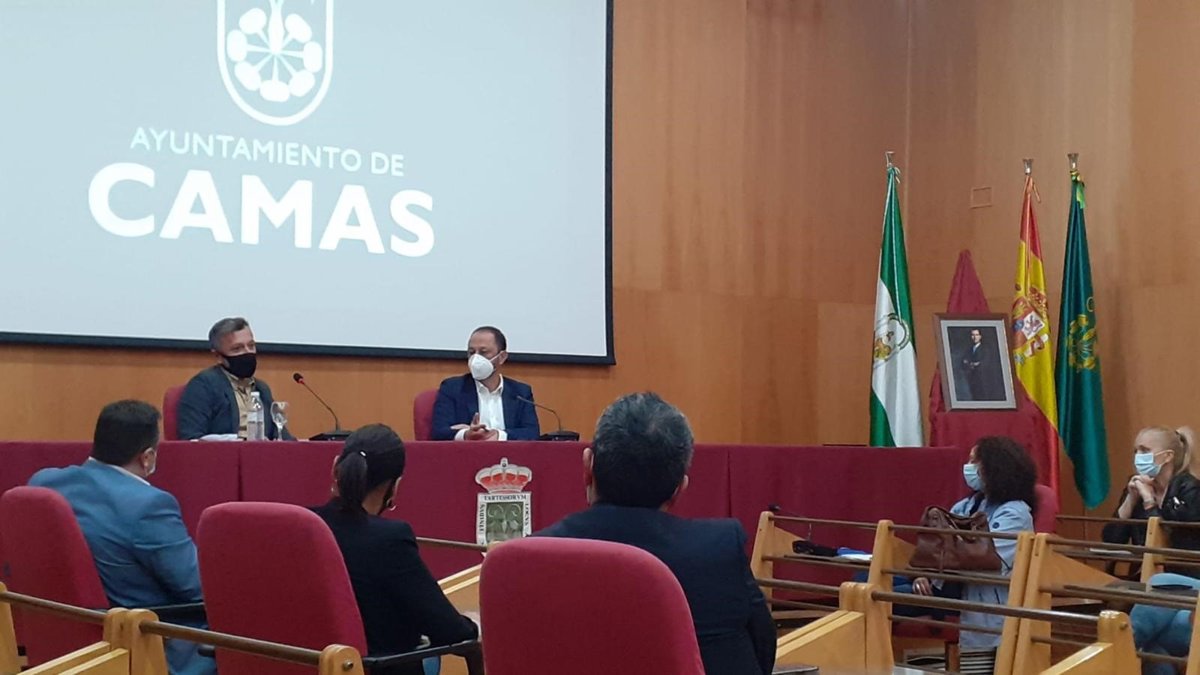 En Camas, Gómez de Celis se ha reunido con la corporación municipal de para interesarse por la evolución de la Covid-19 y "se ha puesto a disposición de su alcalde, Rafael Recio". Tras el encuentro, ha destacado que la unidad de acción política, es "el más acertado enfoque político" para afrontar las consecuencia de la situación epidemiológica", al tiempo que ha reconocido la "excelente labor" del