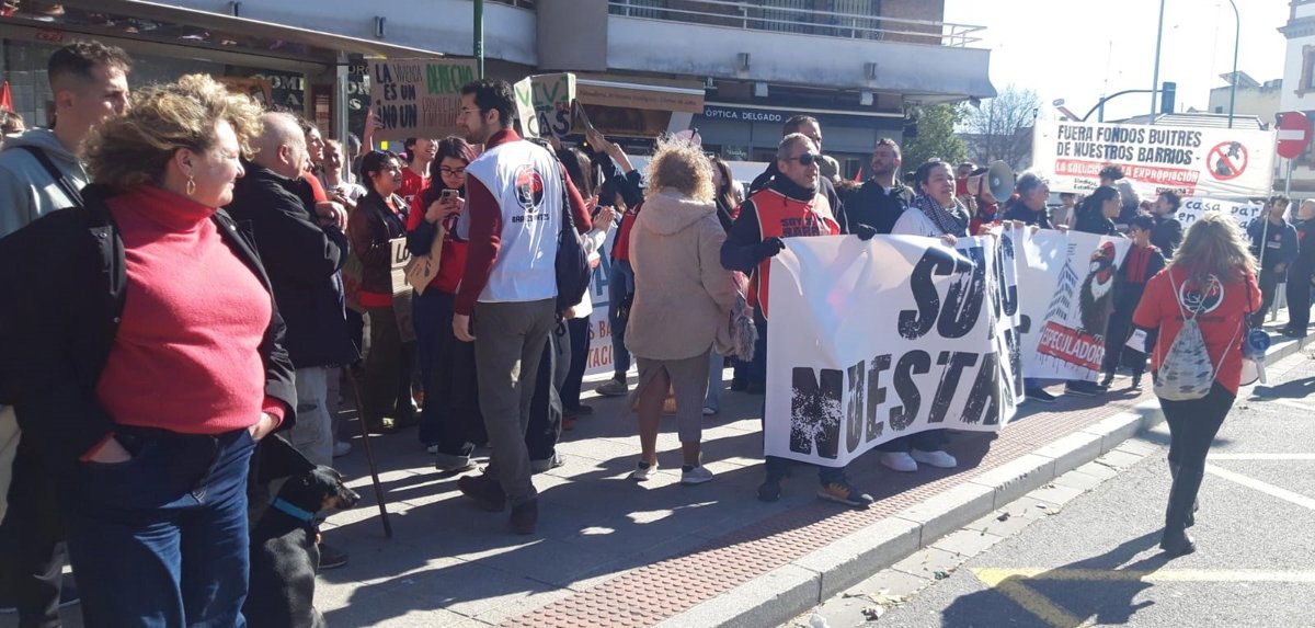 La concejala socialista Natalia Buzón ha participado este sábado en esa manifestación convocada por las familias afectadas junto a organizaciones sociales y sindicales, que ha partido de la Gran Plaza y ha desembocado en la Consejería de Fomento, Articulación del Territorio y Vivienda, por cuanto también se recaba el apoyo de la Administración autonómica para que frene esta operación, según una nota del Grupo Socialista.