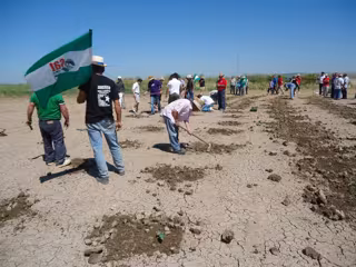 Para el SAT, la siembra que han comenzado a realizar este domingo, y en la que, según Cañamero, ha participado también el alcalde de Marinaleda (Sevilla) y parlamentario andaluz de IU Juan Manuel Sánchez Gordillo, "pone de nuevo en evidencia no sólo el despilfarro de mantener cerca de 1.000 hectáreas ociosas en una comarca azotada por el paro masivo", y representa "una acción directa desde la no violencia activa imposible de asumir por el Gobierno", pues "implica un cuestionamiento directo de su poder".