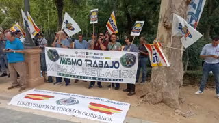 Los aledaños de la Delegación del Gobierno central en Andalucía, en la monumental plaza de España, han acogido la mañana de este miércoles una concentración en el marco de la Plataforma por una Jubilación Digna y la Plena Equiparación Salarial, integrada por policías nacionales y guardias civiles, a instancias de la AUGC y el SUP, según informa la primera de tales organizaciones.