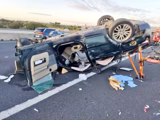 Un vehículo ha volcado este miércoles, en torno a las 20,09 horas en la A-49 en el término municipal de Bormujos (Sevilla) al salirse de la vía y cochar contra la mediana.