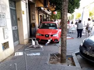 El conductor del coche intentó maniobrar para evitar la colisión, y terminó invadiendo la acera, a la altura de la terraza de un establecimiento cercano.