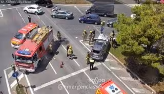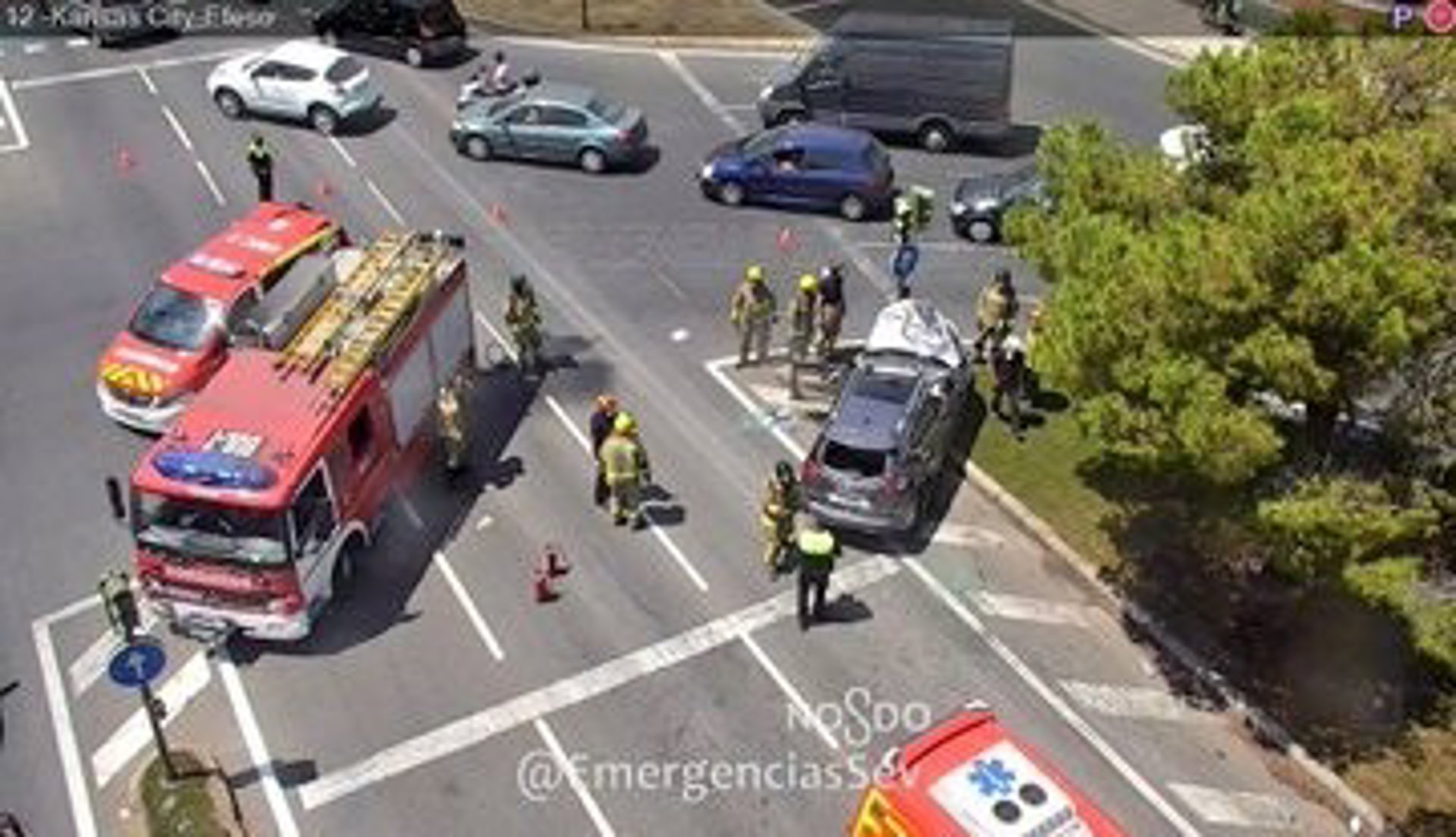 Una mujer de 39 años y un hombre de 48 han resultado heridos al colisionar sus vehículos --el turismo del varón ha llegado a volcar-- en la avenida de Kansas City de Sevilla capital, según ha informado Emergencias Sevilla en redes sociales.