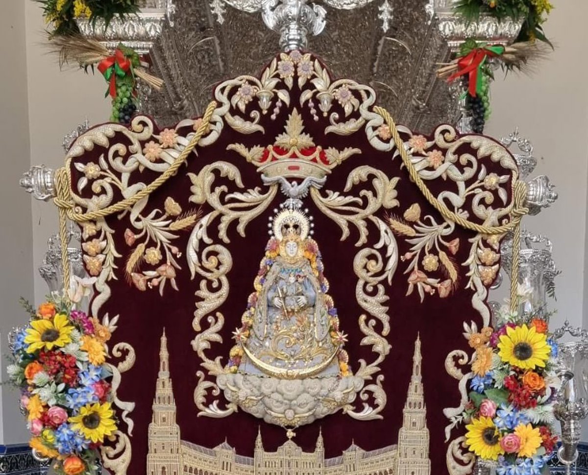 La última de las seis corporaciones rocieras de la capital en abandonar la ciudad --Castrense, Sevilla-El Salvador, Triana, Macarena y Cerro del Águila son las otras cinco-- llegará al Puente de las Delicias, alrededor de las 11,30 horas, por la avenida de la Guardia Civil y la avenida de Moliní. En la avenida Juan Pablo II estarán alrededor de las 13,00 horas y saldrán de Sevilla por el Puente de Hierro.