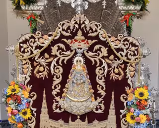 Detalle del Simpecado de Sevilla Sur junto a su carreta de plata. - HDAD.SEVILLA SUR